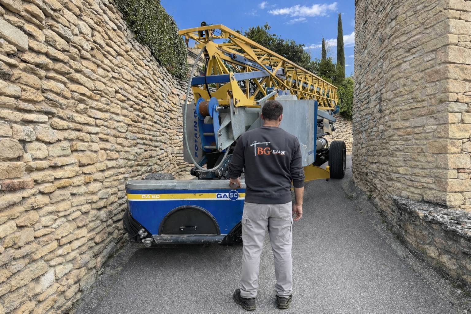 En effet, Antony GARCIA entrepreneur en maçonnerie depuis 14 ans à Rustrel dans le Vaucluse utilise depuis toujours la grue comme engin de levage sur ses chantiers, il a accordé toute sa confiance aux grues de chantier Potain et Upério au point de se dire aujourd'hui qu'il est passionné par cet outil de levage.