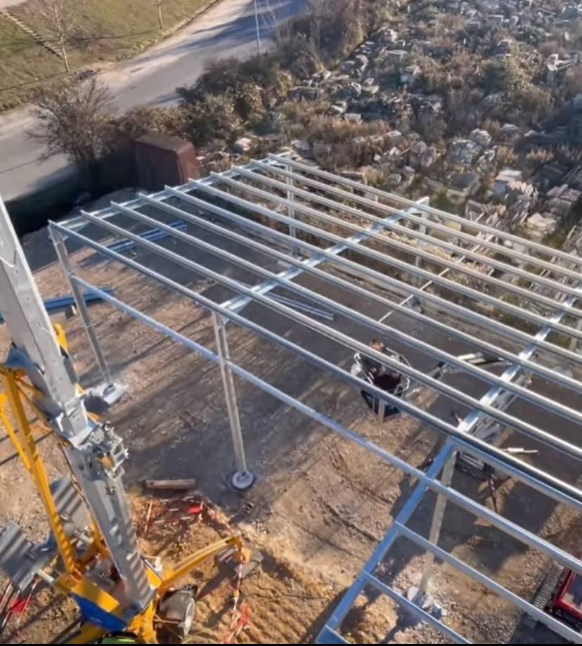 Location grue de chantier IGO M 14 Potain pour montage d'un hangar industriel vers Avignon dans le Vaucluse